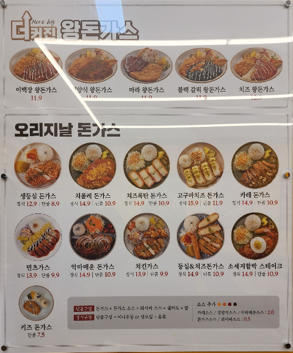 앞에서도 언급하였지만 돈가스 맛집 이백장돈가스는 돈가스 이외에도 다양한 메뉴로 구성되어 있습니다. 파스타, 떡볶이, 만두, 식사류, 면류, 덮밥, 사이드 등 정말 다양합니다. 돈가스도 생등심, 치플레, 치즈폭탄, 고구마치즈, 카레 돈가스 등 정말 다양합니다.