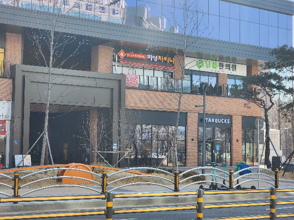 이백장돈가스 갈산점 위치는 요즘 인천 갈산동에서 가장 핫한 인천테크노밸리 건물 맞은편에 위치해 있습니다. 저는 인천테크노밸리 스타벅스를 자주 애용하는 합니다. 스타벅스에서 맞은편을 보면 노란 간판이 가장 눈에 띕니다.