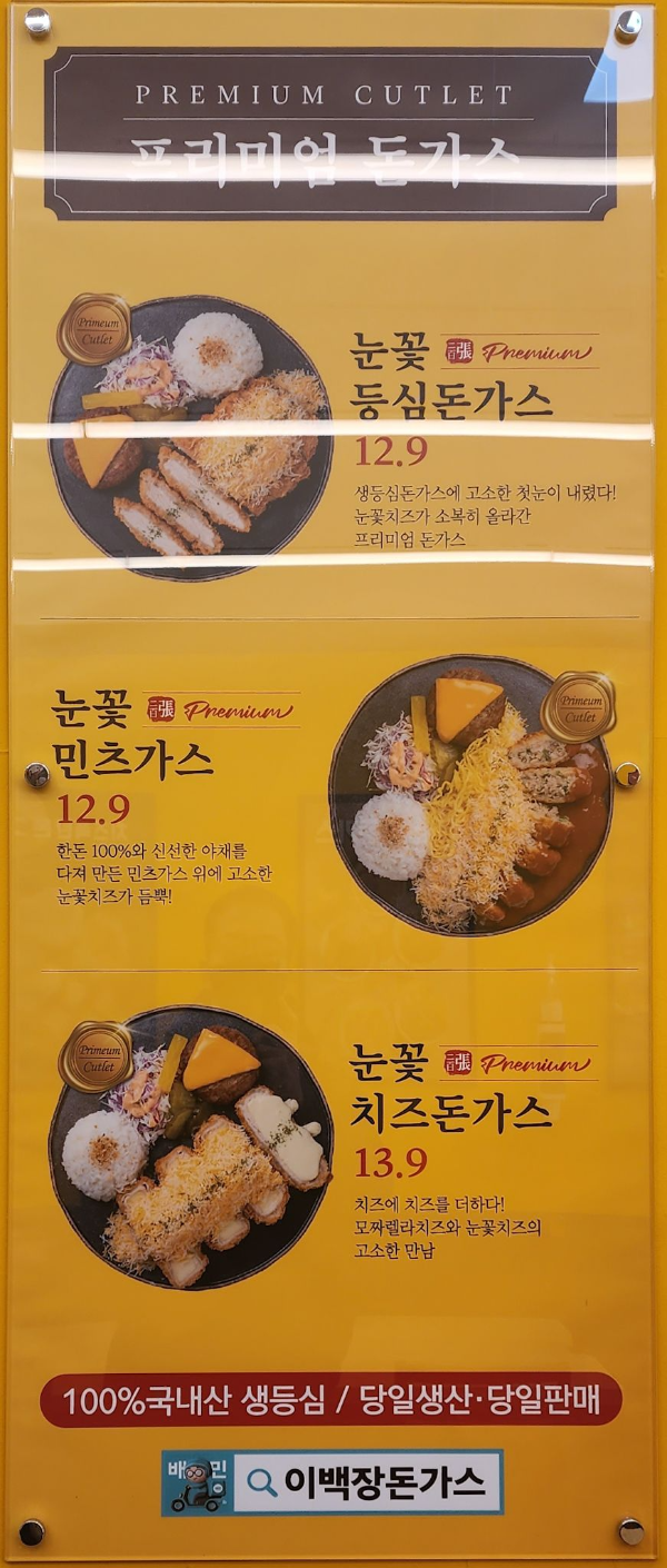 제가 가끔씩 아이들이 돈가스를 먹고 싶다고 하면 찾는 곳이 이백장입니다. 프랜차이즈 돈가스이지만 만들어놓은 돈가스를 튀기는 것이 아닌 당일 소진할 신선한 돈가스를 직접 만들어 판매하는 방식이라서 맛이 좋습니다.