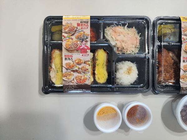 돈가스를 매장에서 맛 본것은 아니고 포장 주문을 하여 집에서 아이들과 함께 했습니다. 주문한 메뉴는 생등심 돈가스와 고구마 치즈 돈가스입니다. 일단 포장은 분류별로 믹스되지 않게 편의점 도시락처럼 깔끔하게 포장해 줍니다.