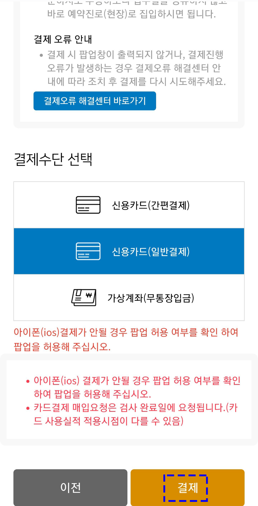 검사 비용에 대해서 결제를 하여야만 검사예약이 완료됩니다. 이때 검사비용이 할인을 받을 수 있는 대상이 있습니다. 장애인, 국가유공자, 한부모 및 조손가정, 기초생활수급자, 다자녀가정 등은 아래 그림과 같이 할인을 받을 수 있으니 대상자이면 선택을 한 후에 결제를 진행하면 되겠습니다.