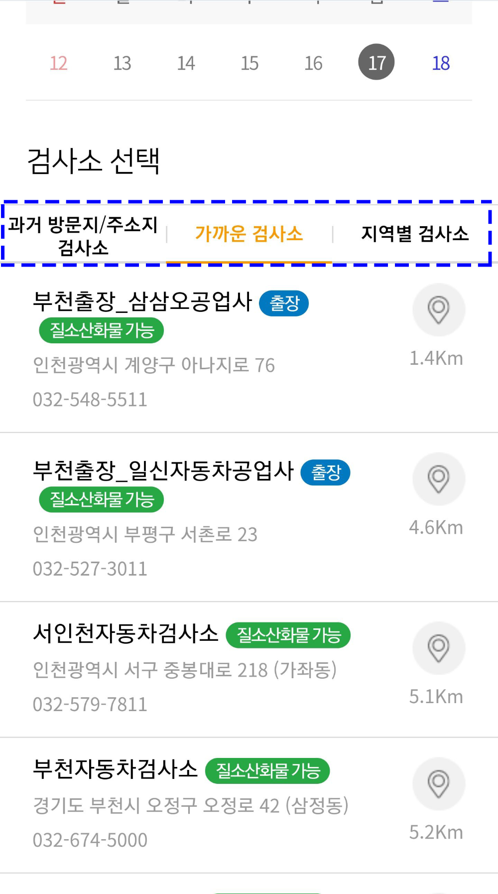 자동차검사 예약 일자를 선택한 후에는 검사소를 선택하면 됩니다. 이때 가까운 검사소를 선택하는 것을 추천합니다. 만약 지역별 검사소가 가깝다면 그래도 되겠지만 지역별 검사소는 보통 거리가 있어 가까운 검사소를 선택하는 것이 좋습니다. 그다음 예약 방문시간과 검사 비용에 대한 결제를 하면 됩니다.