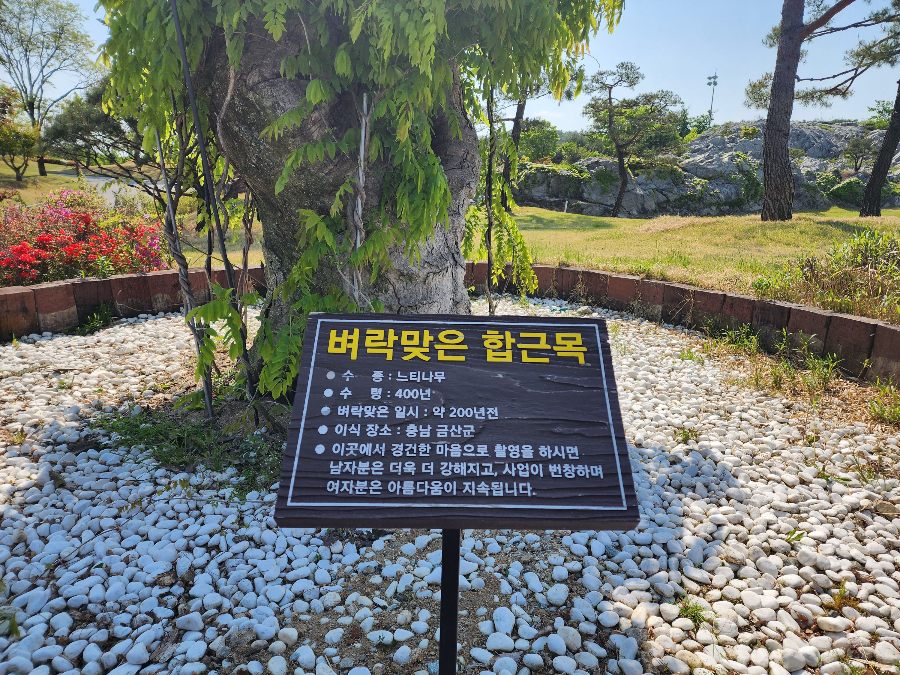 나무 상태로 보아서는 벼락맞은지 오래되지 않은 줄 알았는데 안내판을 보고 깜짝 놀랐습니다. 벼락맞은 일시가 약 200년 전이었습니다. 분명히 골프장이 있기 전부터 이 나무는 있었으며 골프장에서 코스를 만들 때도 나무 위치를 고려하여 설계하였을 것입니다. 위 사진의 안내 입간판과 같이 나무와 함께 촬영하면 좋은 일이 생긴다는 설이 있으니 방문하신다면 무조건 기념 촬영을 해보시기 바랍니다.