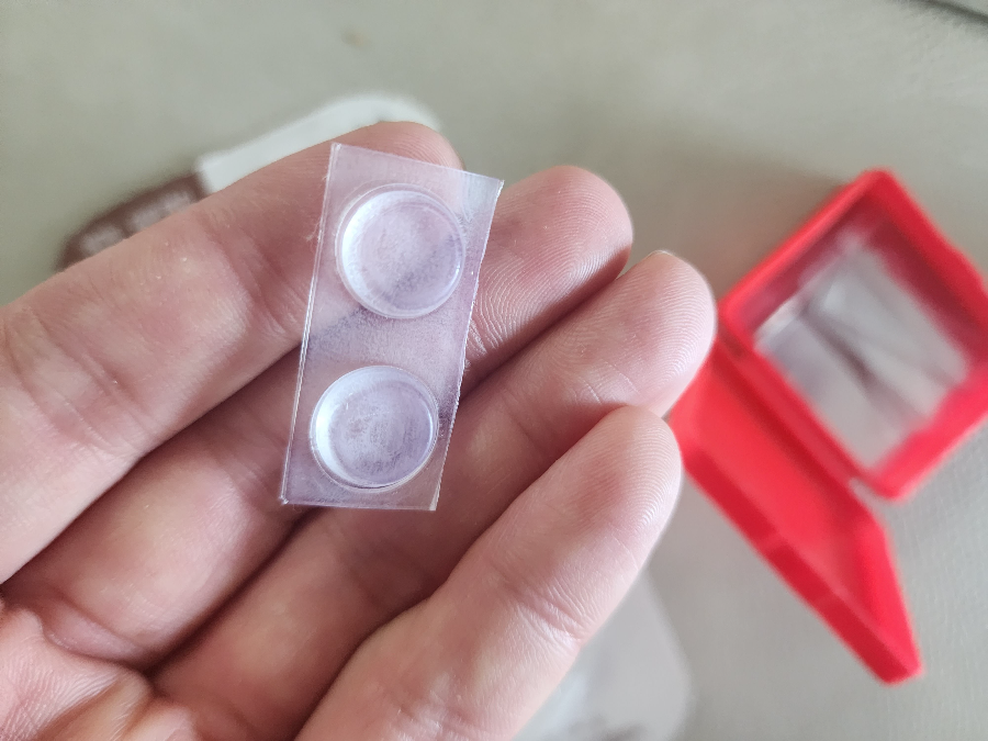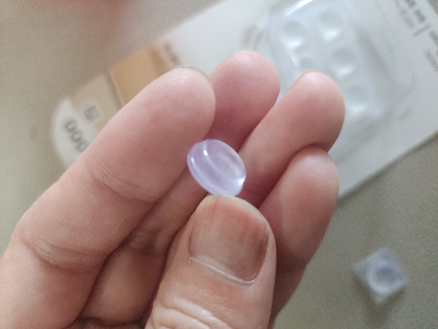 미끄럼 방지를 위한 패드는 4개가 한 세트로 되어 있는데 위 좌측 사진처럼 잘라서 필요한 만큼 사용이 가능합니다. 그런데 이것을 뒷면을 테이프를 제거하고 나면 위 우측 사진처럼 원형 모양의 패드만 분리됩니다. 저는 처음에는 이것이 첨착력이 있는 줄 알았는데 접착 능력은 가지고 있지 않습니다. 그래서 양면테이프를 이용해야만 쇼파 미끄럼 방지를 할 수 있습니다.