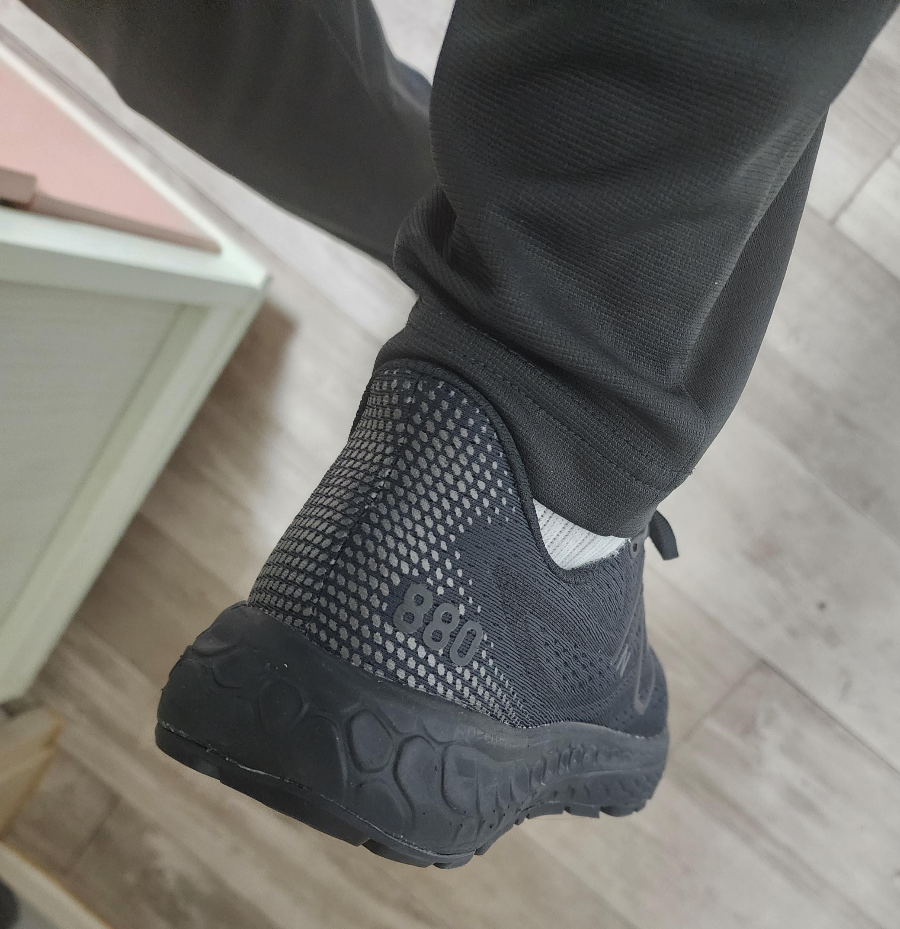 저는 뉴발란스 880의 힐탑부분의 디자인이 처음에 보았을 때는 마음에 들지 않았지만 지금은 볼수록 괜찮다는 느낌을 많이 받습니다. 전체적으로 메쉬 소재로 하였다면 부드러운 느낌을 들었겠지만 힐탑 부분은 무언가 단단함이 느껴져 좋습니다. 그리고 미드솔의 중창 부분도 힐탑 부분에서 약간 들어가게 디자인되어 있어 미드솔 부분이 도톰하지만 뒤에서 보았을 때 과하지 않습니다.