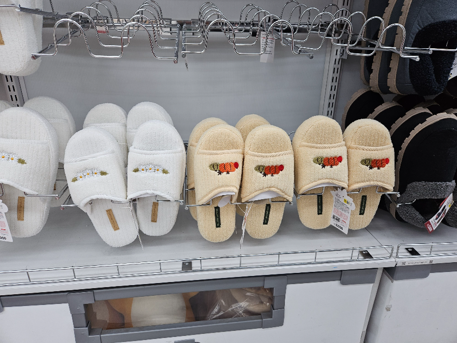 겨울용 거실화 실내화가 진열되어 있었는데, 겨울용 거실화는 따뜻해 보이지만 실내에서 신기 답답하게 느껴질 것 같아 구입하지 않았습니다.