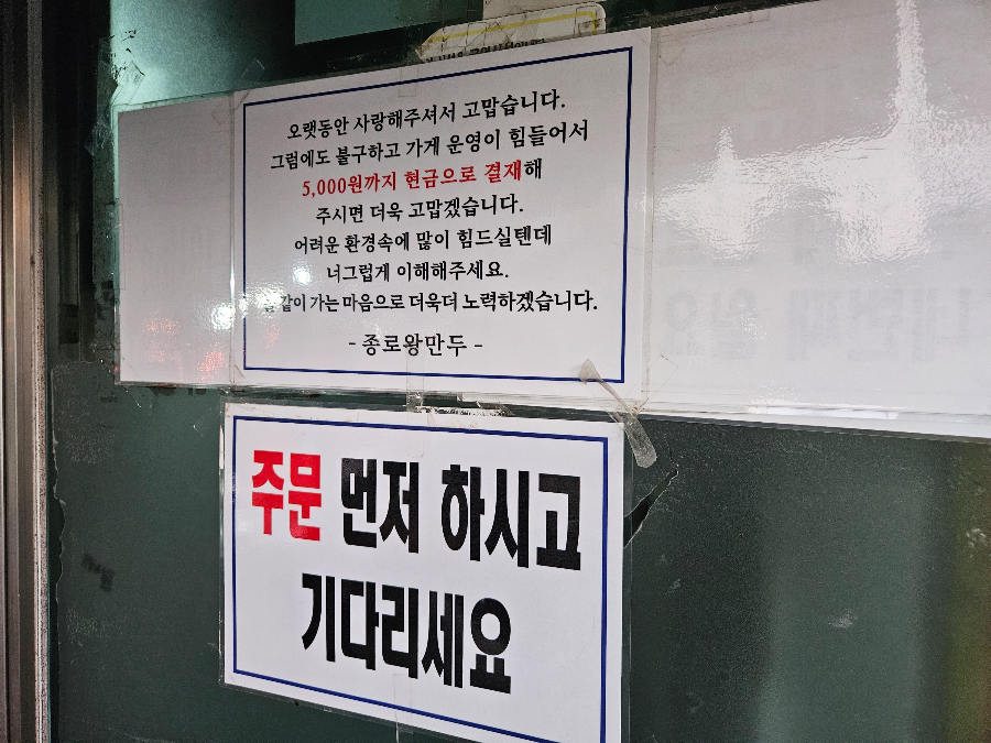 최근 물가가 많이 올라서 종로왕만두 역시 가격이 인상되었습니다. 만약 종로왕만두에 처음가시는 분들께 팁을 드리자면 그냥 기다리지 마시고, 매장 안에 들어가서 주문을 먼저 하고 기다려야 합니다.