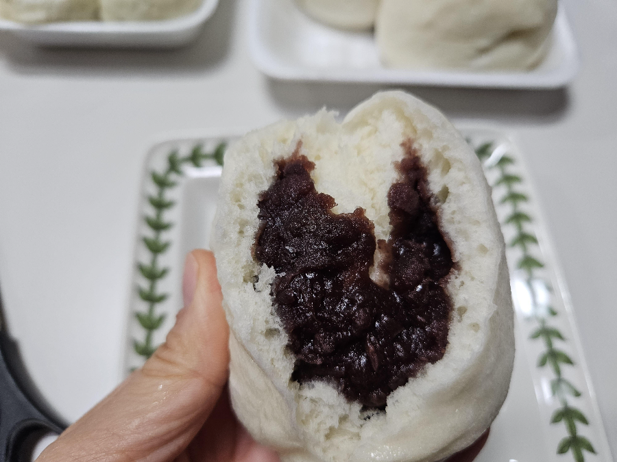 찐빵을 좋아하지 않아 만두만 먹어 보았는데 손님들이 찐빵을 많이 주문해서 얼마나 맛이 있는지 궁금했습니다. 호빵 같은 찐빵인데 팥이 많이 달지 않고 부드럽습니다. 찐빵은 8개에 5,000원으로 가격도 저렴한 편입니다.
