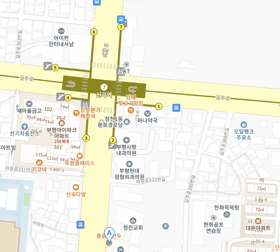 주소는 인천 부평구 마장로 324이며, 산곡역 2번 출구 185m 거리에 도보 3분 거리입니다. 영업시간은 10:00~22:00까지이면 휴무 없이 운영되고 있습니다.