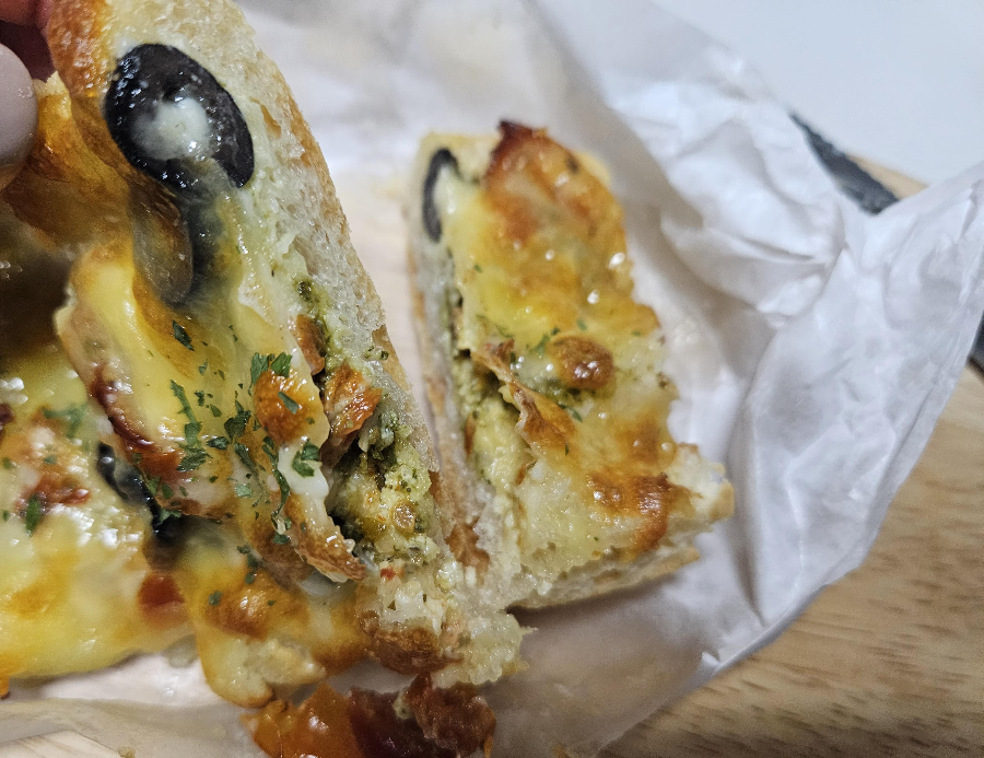 제가 갈 때마다 매번 구입하는 바질토마토 타르틴은 블랙 올리브가 콕콕 박혀있고, 에멘탈치즈, 썬드라이토마토, 바질페스토가 들어가 있습니다. 실리제롬보다 맛있는 바질토마토 타르틴을 먹어본 적이 없을 만큼 추천드리는 빵입니다.