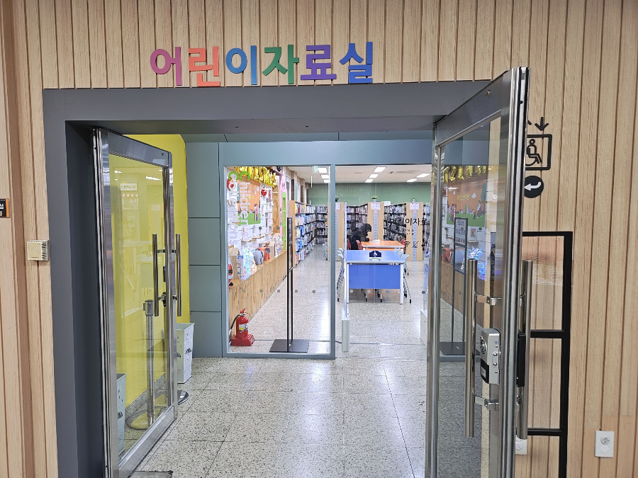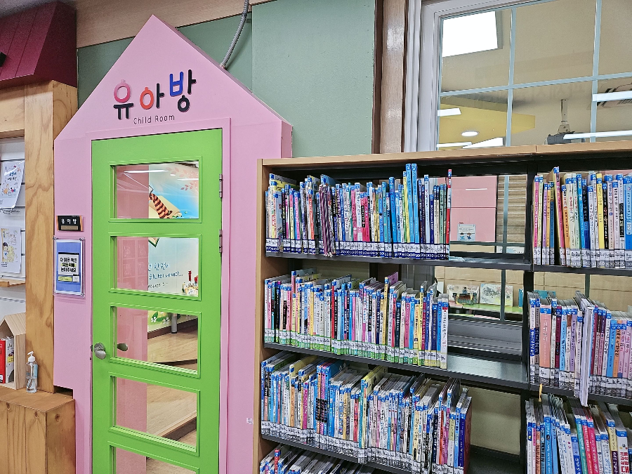 어린이자료실이 아기자기하게 꾸며져 있으며, 어린이자료실 내에 어린아이들이 이용할 수 있는 유아방도 있습니다. 도서대출은 10권까지 가능하며 셀프로 책을 빌릴 수 있고 반납도 가능합니다.