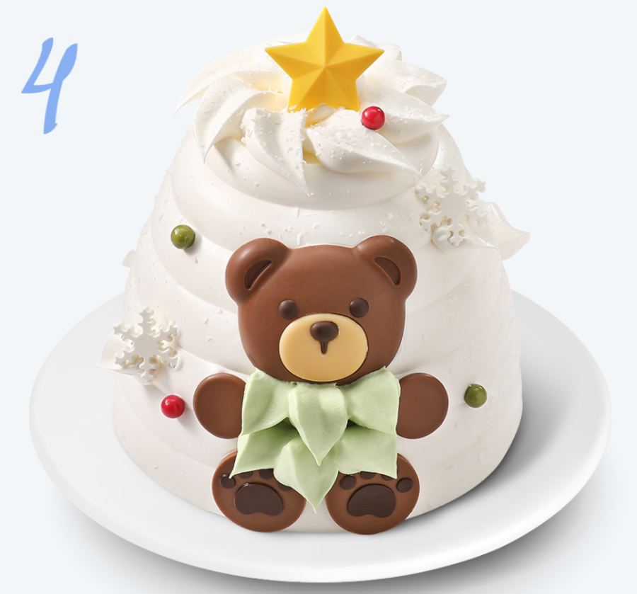 케이크 이름과 딱 맞는 컨셉으로 별 아래 초코로 만든 꼬마 곰 캐릭터가 있는 케이크입니다. 은은한 바나나향 시트와 달콤한 초코 크림이 어우러진 크리스마스 트리 모양의 케이크입니다. 가격은 37,000원이며, 10% 할인가는 33,300원입니다.