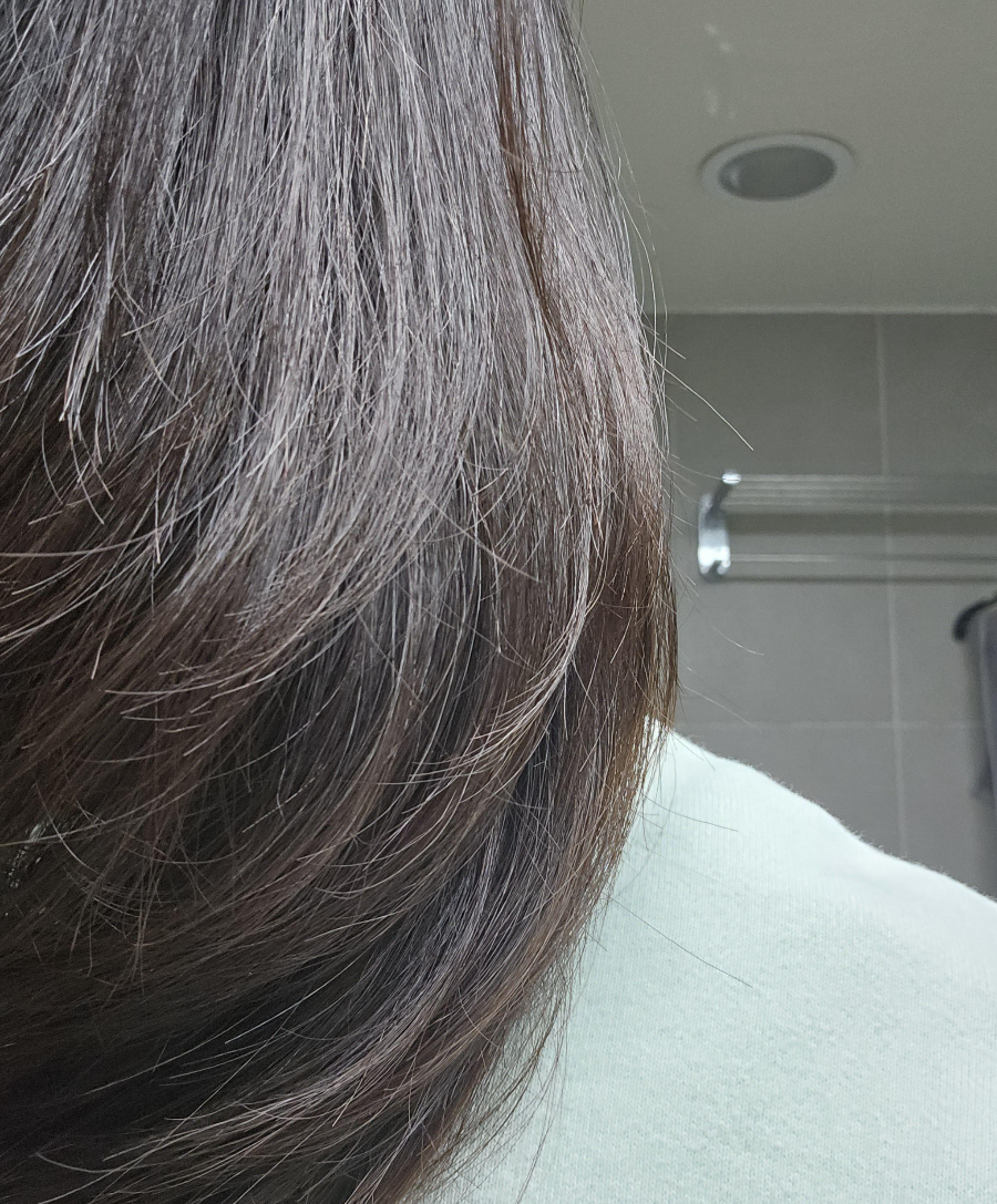 시몽 테르미크는 전에도 사용을 해본 경험이 있기 때문에 효과에 대해서는 잘 알고 있습니다. 아무리 좋은 제품이라도 단기간 사용으로 모발이 개선되는 효과를 보기는 어렵습니다. 1회 사용 후 사진을 찍어 보았습니다. 머릿결이 많이 손상되어 꾸준히 관리해 주어야 할 것 같습니다.
