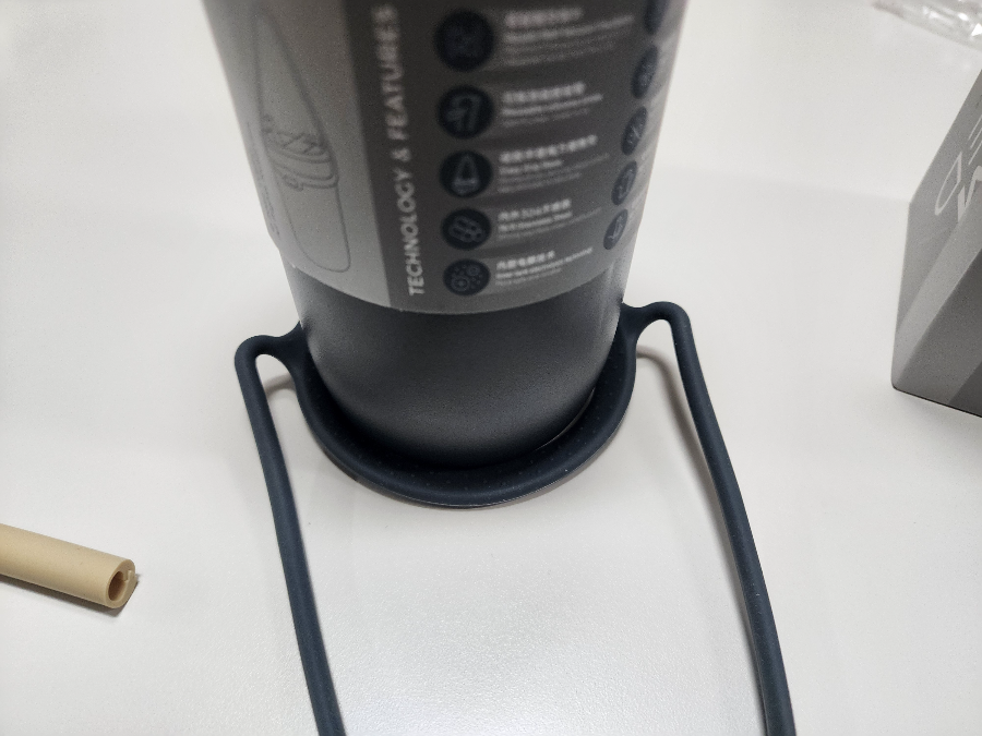 핸드스트랩은 진공 텀블러 아래에서부터 끼워서 반짝이 스테인레스 부분이 나타나는 턱까지 올려주면 됩니다. 스트랩이 러버로 되어 있어 마찰력이 있어 잘 올라가지 않습니다. 한번 결합하면 분리하는 것이 아니며 휴대하기 편할 것 같아 결합해서 사용하고 있습니다. 조금 거추장스럽다고 생각되시면 분리하여 사용해도 될 것 같습니다.