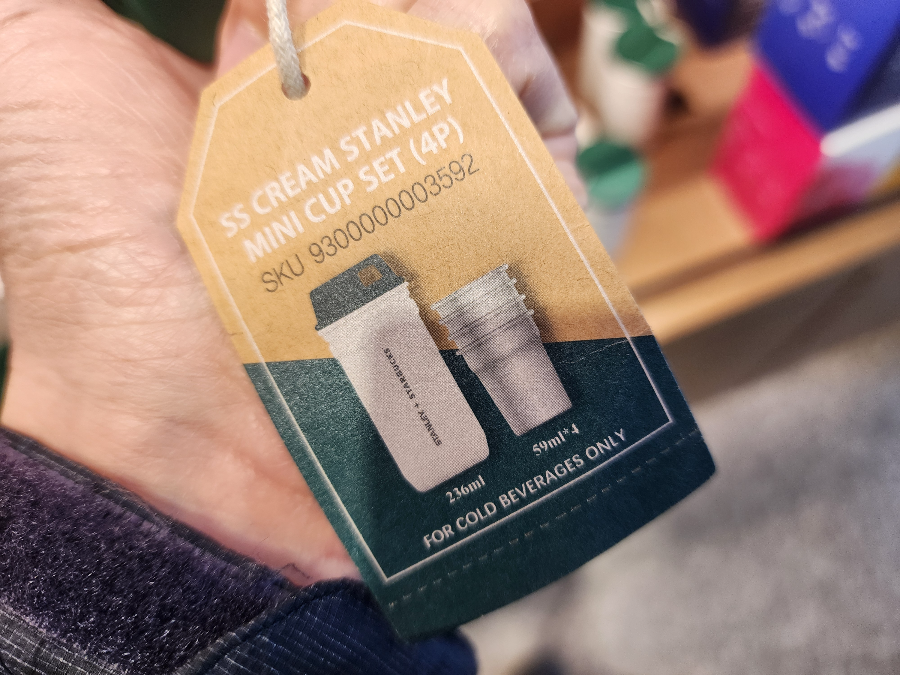 스탠리와 콜라보로 된 특이한 제품이 보였습니다. 주먹만 한 컵으로 보였는데 뚜껑은 돌려서 오픈하고 닫는 형태였습니다. 이것을 무엇으로 사용하려고 나온 제품인지 궁금했습니다.