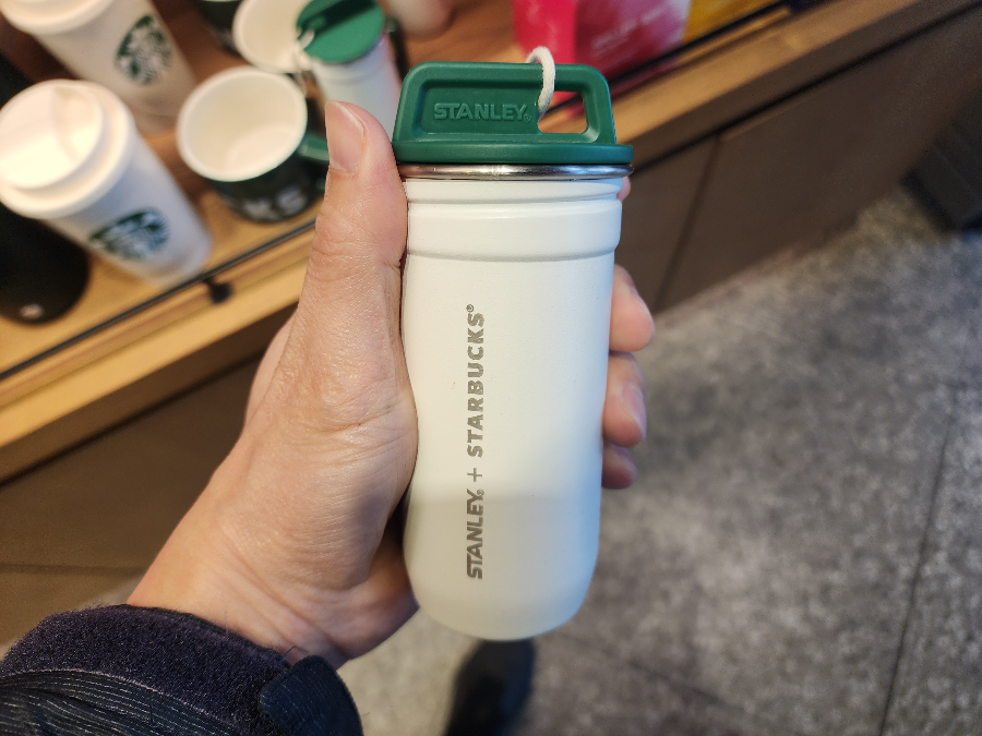 이번에 스타벅스 매장에서 텀블러를 구경하였더니 100년의 역사를 자랑하는 용기 브랜드 스탠리와 함께 콜라보한 제품도 있었습니다. 아주 대용량 사이즈는 아니지만 스타벅스 사이즈 기준으로 벤티는 충분히 될 것 같습니다. 빨대도 함께 있는 제품이라 함께 사용한다면 쓰레기 배출을 줄이는데 굉장히 도움이 될 것입니다.