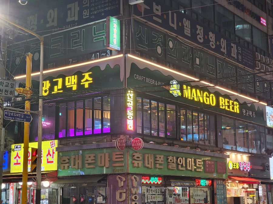 산곡동은 많은 아파트 단지가 있는 주거 지역입니다. 최근 몇 년 전부터는 7호선이 연장 개통되었고 청천동 재개발에 따라 향후에는 더 많은 사람들이 살 것입니다. 이러한 산곡동에 제가 자주 애용한 생맥주 집이 있습니다. 바로 망고맥주와 투다리입니다.