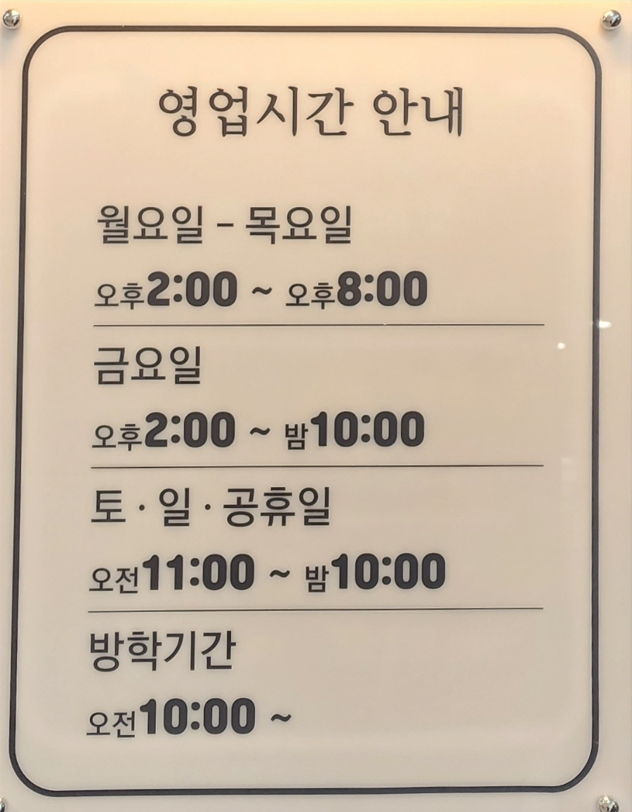 청라 키즈카페 플레이고 영업시간은 요일에 따라 조금씩 차이가 있습니다. 주중인 월요일에서 목요일까지는 오후 2시부터 8시까지이고 금요일은 오후 2시부터 밤 10시까지, 토요일은 오전 11시부터 밤 10시까지입니다. 아이들 방학기간에는 무조건 오전 10시부터 영업을 시작합니다.