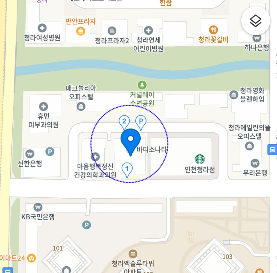 청라 플레이고는 커널웨이 끼고 자리잡은 상가 지역에 위치해 있습니다. 스타벅스 인천 청라점 옆건물에 위치해 있어 찾기가 어렵지 않습니다.