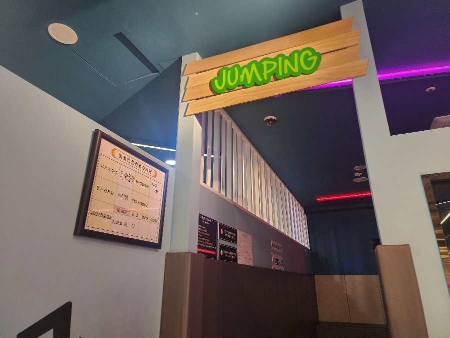 조금은 비활동적인 놀이장비가 있는 것은 아닙니다. 청라 키즈카페 플레이고는 아이들이 활동할 수 있는 놀이공간도 있습니다. 점핑이라고 하는 대형 트램펄린 시설이 있습니다. 성인분들 트램펄린 다이어트도 있어 여기서 한 시간 뛰어놀면 땀이 나지 않을 수 없습니다. 안쪽에는 미끄럼을 탈 수 있게 경사지게 만들어져 있습니다.