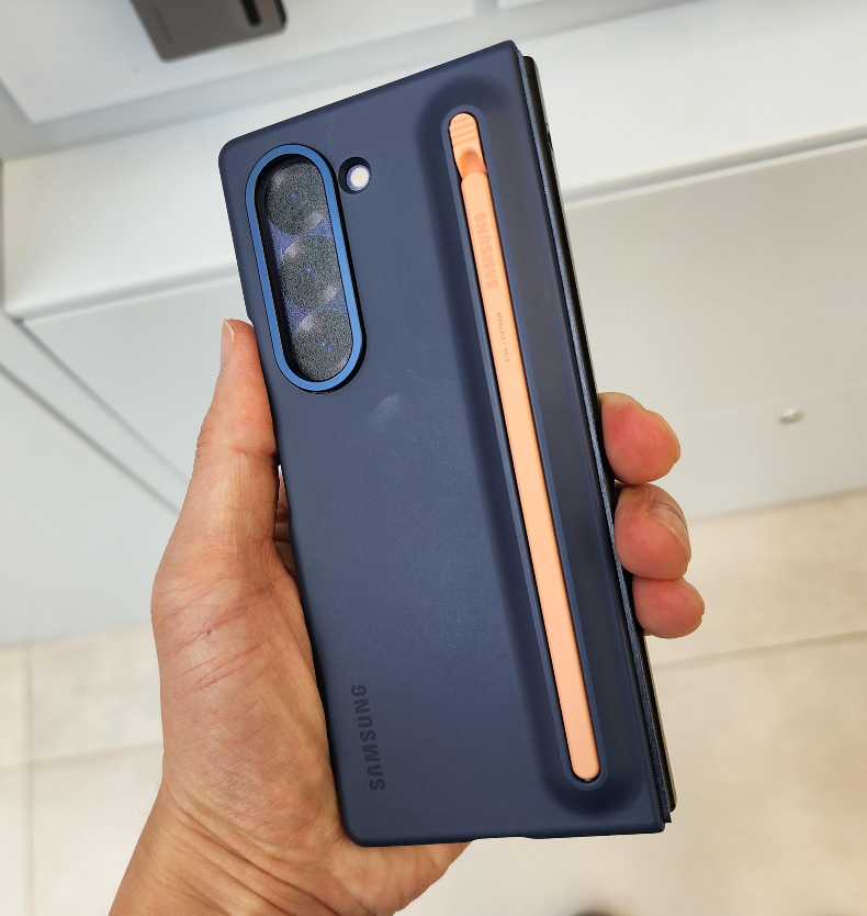 다음으로 손에 쥔 것은 제가 정말 한번 구입해보고 싶은 Z폴드6였습니다. 전작들보다 이번 라인업은 각지면서도 세련된 맛을 느낄 수 있었습니다. 그리고 Z플립6와 동일하게 접혀서 두 화면이 밀착되는 부분의 느낌이 굉장히 마음에 들었습니다. 정말 갈수록 좋아지는 갤럭시 접는 스마트폰입니다.