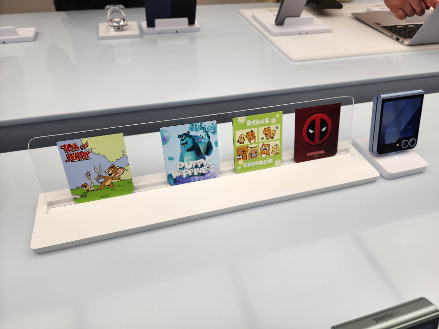 출시와 함께 나온 다양한 정품 케이스들도 만나볼 수 있었습니다. 스마트폰이 현대인의 필수품이면서 액세서리가 된 지 오래되었습니다. 그러한 현대인의 니즈를 반영한 다양한 디자인으로 된 케이스를 직접 만져볼 수 있습니다.