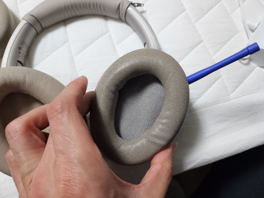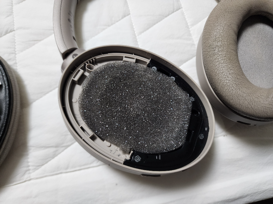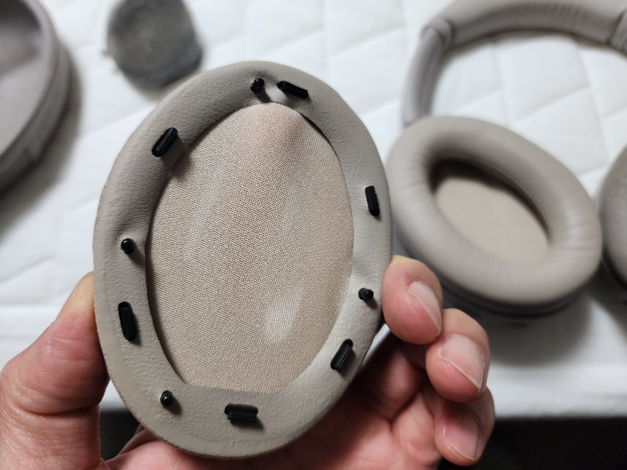 소니 wh 1000xm3 오른쪽 이어패드만 교체했습니다. 한쪽만 교체하였는데도 처음 구매하였을 때의 그 느낌이 새록 생각이 났습니다. 교체되지 않은 이어패드와 확연하게 차이가 나는 것을 볼 수 있습니다.